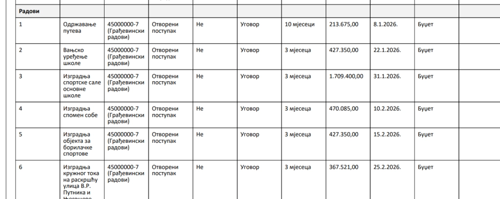 Opština Istočno Novo Sarajevo, kojom rukovodi načelnik Jovan Katić (SNSD) objavila je Plan nabavki za 2026. godinu, težak oko deset miliona KM.