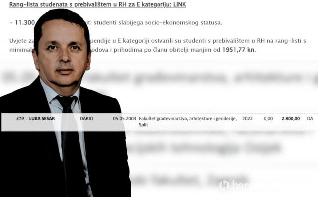 Nakon raskrinkavanja jedne bogate obitelji iz BiH koja je koristila privilegije dvojnog državljanstva da im dijete dobiva stipendiju za studente slabijeg socio-ekonomskog statusa u Republici Hrvatskoj, otkrili smo novi sličan slučaj, sina HDZ-ovog ministra gospodarstva u Županiji Zapadnohercegovačkoj u svom trećem mandatu i dopredsjednika županijske vlade, Darija Sesara.