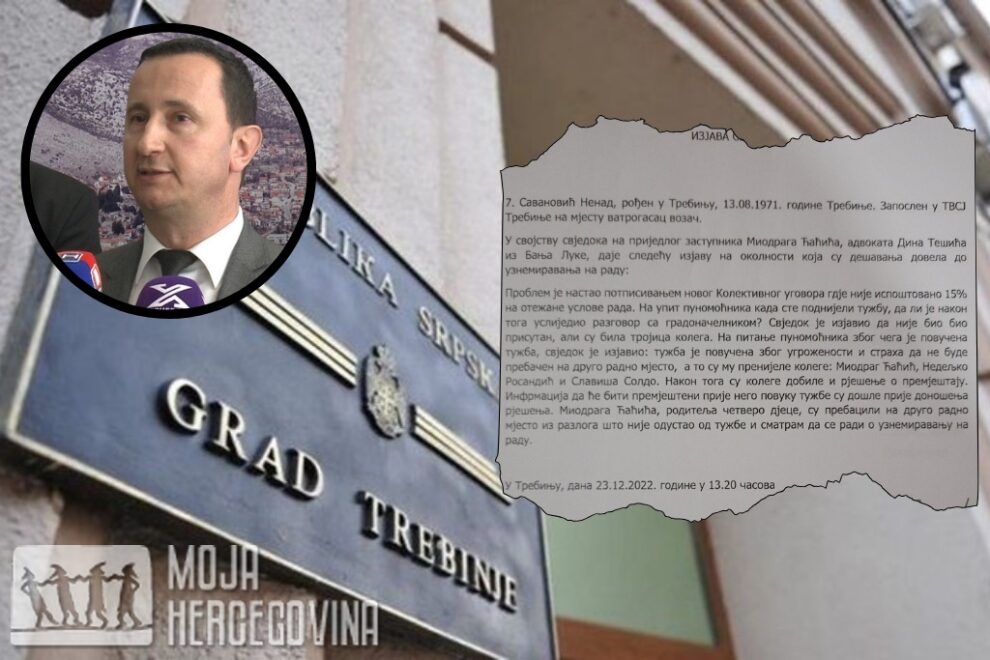 U Zahtjevu za zaštitu od uznemiravanja na radnom mjestu koji je Gradskoj upravi Trebinje podnio Miodrag Ćaćić navodi se geneza sukoba sa gradonačelnikom Ćurićem i problemima koji su nastali nakon što uz platu nije uplaćen bonus od 15% koji je potpisan i dogovoren ranije potpisanim Kolektivnim ugovorom.